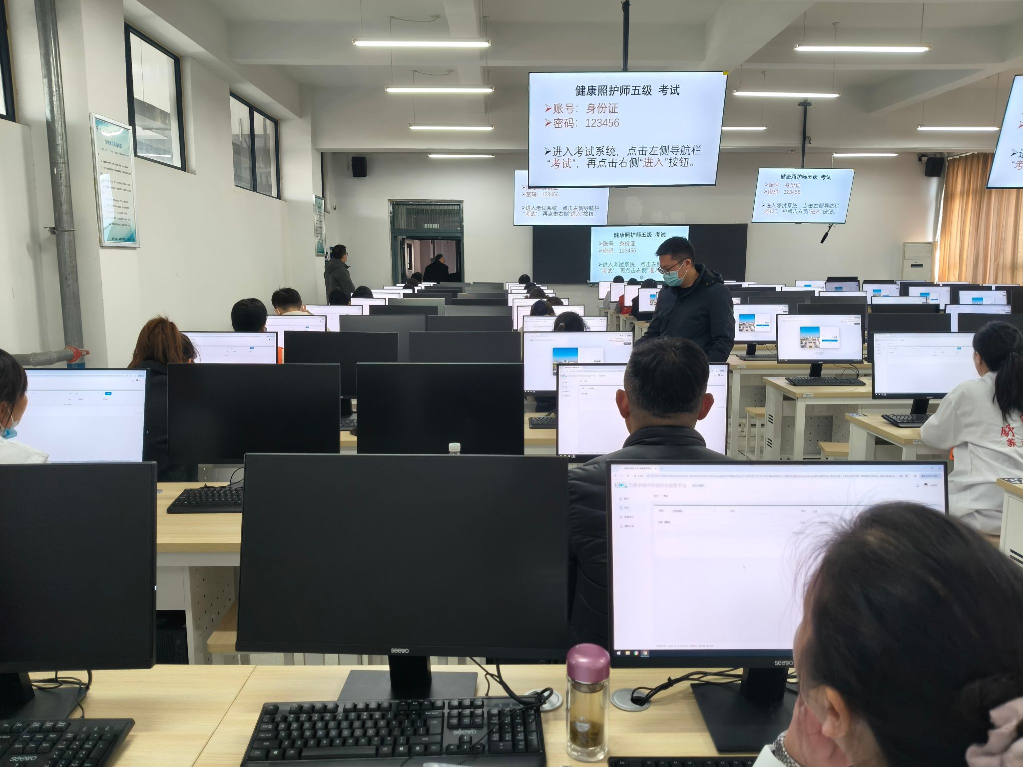此次考试为全国统一联考,时间紧、任务重。面对挑战,学院周密部署、精心组织,在学校相关部门协同配合及全体考评、考务人员的共同努力下,考务工作各环节均规范高效、井然有序。来自医院、养老院、家政公司、健康产业、保险公司等机构的145人参加了本次认定,经严格考核,共有112人通过认定,通过率77%。