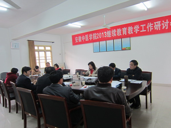 3月5日下午,继续教育学院院长李瑞洲主持召开安徽中医学院2013继续教育教学工作研讨会,学校副院长彭代银、教务处处长储全根、高教所所长韩茹、继续教育学院书记刘世刚、中医临床学院院长周美启、中西医结合临床学院副院长黄金玲、药学院院长戴敏、继续教育学院教务科成员及相关二级学院教学秘书参加了会议。