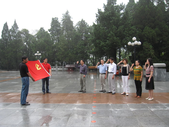 按组织部组发〔2011〕17号文要求,响应学校为进一步推进学校深入开展创先争优活动和隆重纪念建党90周年,我院于6月17日,总支书记刘世刚带领全体党员冒雨远赴金寨开展“缅怀先烈、重温誓词”活动。