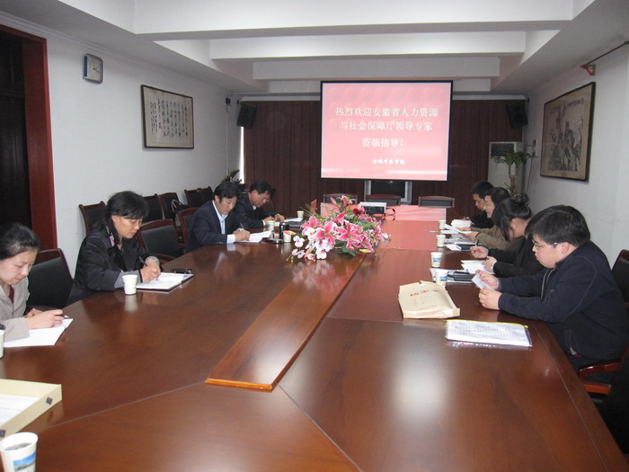 2011年4月13号下午,安徽省人力资源和社会保障厅职业技能鉴定所质量管理评估检查组马军主任一行来我校职业技能鉴定所检查。学校彭代银副校长、继续教育学院李瑞洲院长、护理学院池建淮院长及鉴定所相关工作人员参加本次评估检查工作。