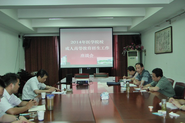 7月22日,由省教育厅高教处组织,安徽省医学院校成人高等教育招生工作座谈会在我校召开。来自安徽医科大学、皖南医学院、蚌埠医学院的成人教育学院院长在会上交流各学校2014年招生工作情况。省教育厅高教处徐海洋主任主持会议。我校党委书记王大鹏出席会议并致欢迎词。