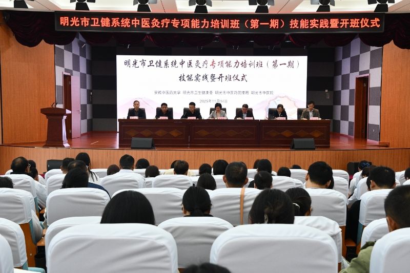 11月14日下午,明光市卫健系统中医灸疗专项能力培训班在明光市中医院顺利开班。明光市人民政府副市长缪传凤,明光市卫健工委书记、主任王大虎,明光市中医院党委书记郭玉林、院长李长安,我校继续教育学院院长童佳兵,以及来自明光市各级各类医疗卫生机构的130余名医护人员,学校继续教育学院、明光市中医院相关人员参加了开班仪式。王大虎主持开班仪式。
