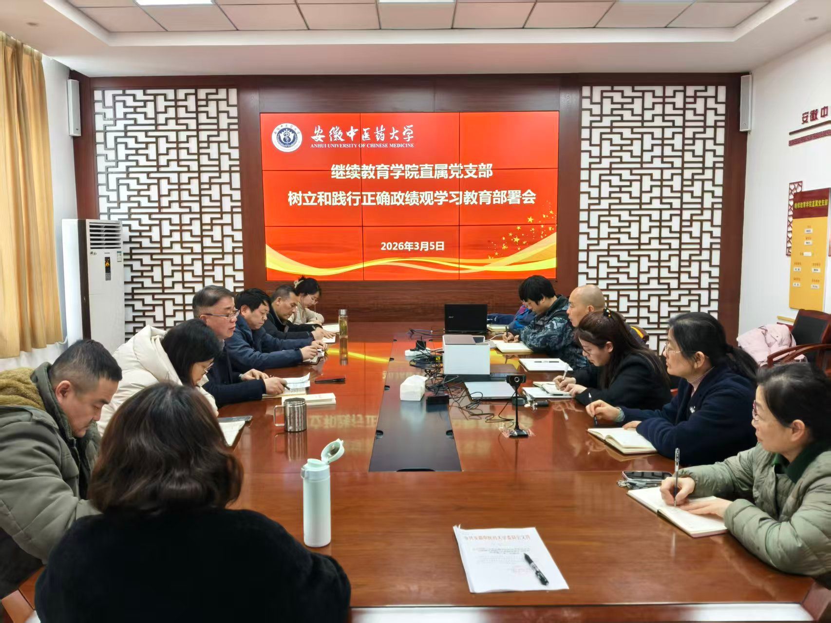 3月5日,继续教育学院直属党支部召开开展树立和践行正确政绩观学习教育部署会,传达学习中央办公厅《关于在全党开展树立和践行正确政绩观学习教育的通知》和学校有关会议精神,研究讨论学院直属党支部关于开展树立和践行正确政绩观学习教育的实施方案,部署学习教育工作。直属党支部书记、院长童佳兵主持会议,学院全体教职工参加会议。